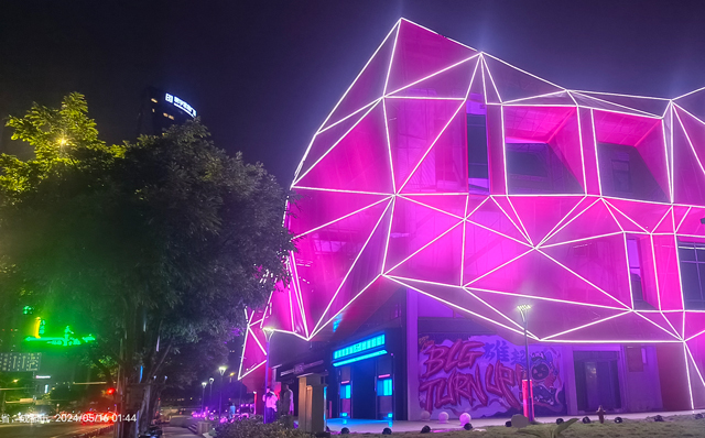 近期,位于成都牛王庙地铁站附近的元介电竞中心建筑艺术灯光亮化工程正在进行中。这座建筑部分外观呈不规则几何造型,在线条灯勾勒出边缘轮廓,犹如一件现代艺术建筑,矗立在繁华的都市之中。为了进一步提升建筑的艺术效果,成都鹰皇科技工程团队采用了户外防水帕灯为建筑打光渲染色彩。